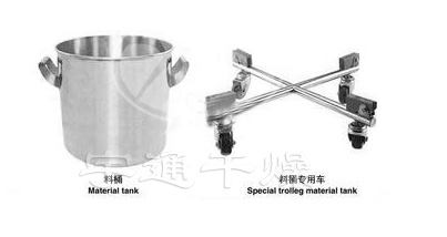 TJG 系列固定提升加料機由兩部分組成,即提升機及底座。提升機由機架、液壓提升系統及料門翻轉機構組成。工作時,先將提升機的料門與料桶扣合,啟動提升操作桿,料門與料桶一起上升,啟動翻轉操作桿,料桶即可番轉180度,呈底桶向上姿態并移動到所需位置,利用料門上出料蝶閥,可很容易將物料加入所需的工藝設備中。