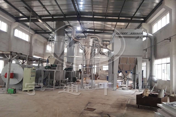 在干燥主機(jī)的上部設(shè)置環(huán)形擋板,此被稱為閃蒸干燥機(jī)分級器。當(dāng)物料運(yùn)動經(jīng)過該分級器時變會受到離心力的作用,呈現(xiàn)不同旋轉(zhuǎn)半徑螺旋上升的趨勢。粒徑較小的物料從分級器的內(nèi)孔排出;顆粒較大的物料被留在干燥室內(nèi)繼續(xù)粉碎,待達(dá)到標(biāo)準(zhǔn)粒度從內(nèi)孔排出。