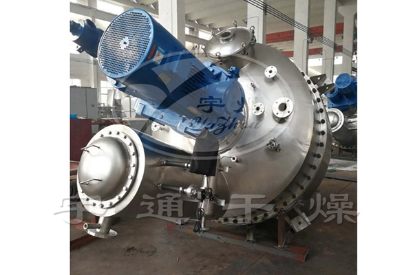 GLZ系列真空螺帶干燥機(jī)主體立式靜止,內(nèi)部加熱的螺帶進(jìn)行圓周攪拌提升運(yùn)動,物料進(jìn)入干燥腔體后利用夾套和攪拌螺帶對物料接觸加熱,物料被螺帶有序的攪動,翻轉(zhuǎn)、提升、瀑落,使物料不斷的與加熱腔壁接觸而進(jìn)行強(qiáng)制熱交換,受熱揮發(fā)的溶媒在真空狀態(tài)下被抽走,從而達(dá)到快速干燥的目的。