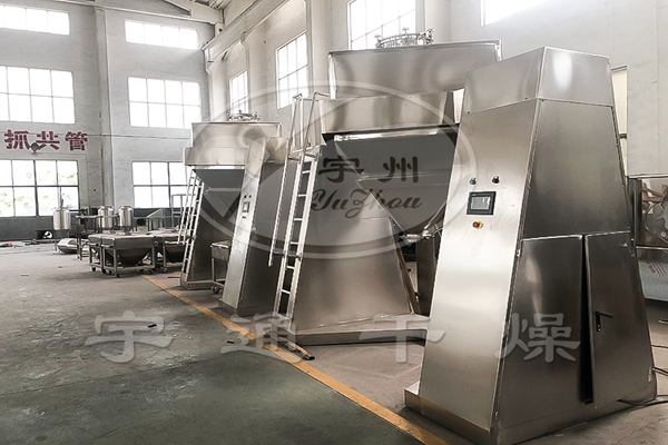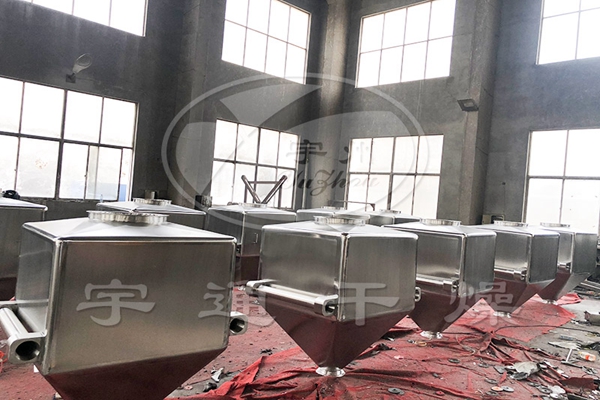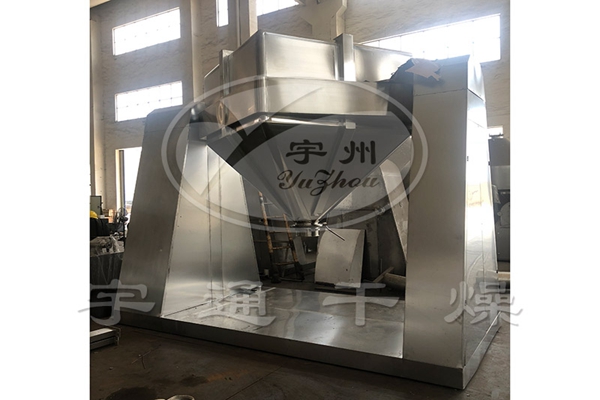 將物料裝入方錐形密閉混合桶內,料斗對稱的軸線與回轉軸軸線成一夾角,不同成份物料在密閉的料門中進行三維空間運動,產生強烈翻轉和擴散作用,達到佳的混合效果。整機設計新穎、結構緊湊、外形美觀、混合均勻度達99%,體積裝料系數達0.8。