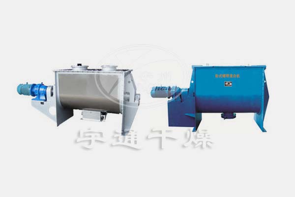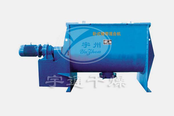 該機型由容器、螺旋攪拌葉片和傳動部件組成:螺旋葉片一般做成雙層或三層,外層螺旋將物料從兩側向中央匯集,內層螺旋將物料從中央兩側輸送,形成對流混合。