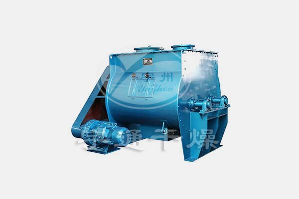 本系列混合機以強烈、混合為特點、臥式筒體內兩根攪拌等速反向旋轉,上特殊布置的槳葉確保物料徑向、環向、軸向三向運動,形成復合循環,在極短的時間內達到均勻混合。