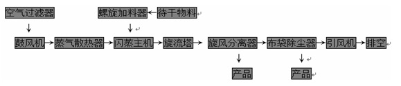 無機(jī)鹽旋轉(zhuǎn)閃蒸干燥機(jī)技術(shù)工藝(流程圖):