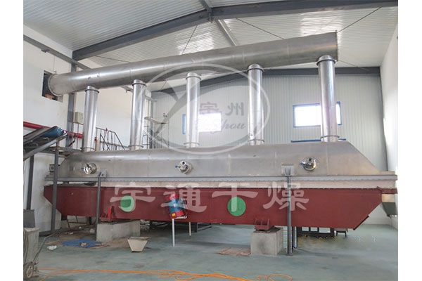 3. 由于施加振動,可使小流化氣速降低,因而可顯著降低空氣需求量,進而降低粉塵層夾帶,配套熱源,風機,旋風分離器等也可相應縮小規格,成套設備降低,效果明顯。可方便地依靠調整振動參數來改變在機內滯留時間。其活塞流式的運行降低了物料粒度均勻性及規則性要求,易于獲得均勻的干燥產品。