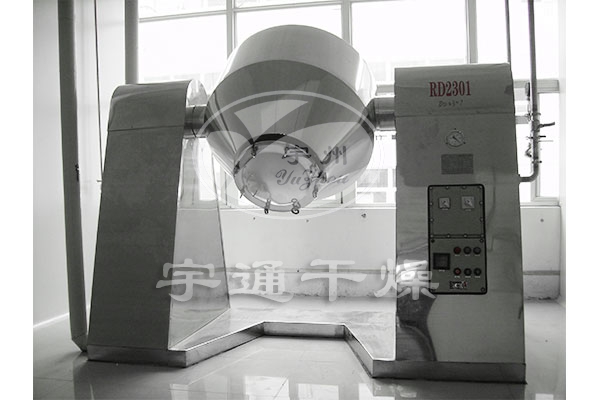 由于罐體內處于真空狀態,各種物料中的溶媒(包括水)在真空的條件下均能在較低的溫度迅速汽化,且罐體的回轉使物料不斷地上下、內外翻動,物料不斷地更新與器壁接觸的表面,從而充分利用了器壁所傳導的熱量,加快了物料的干燥速度,提高干燥效率,并能達到均勻干燥的目的。
