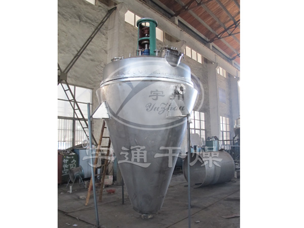 該設備主體立式靜止,內(nèi)部加熱的螺帶進行圓周攪拌提升運動,物料進入干燥腔體后利用夾套和攪拌螺帶對物料接觸加熱,物料被螺帶有序的攪動,翻轉、提升、瀑落,使物料不斷的與加熱腔壁接觸而進行強制熱交換,受熱揮發(fā)的溶媒在真空狀態(tài)下被抽走,從而達到快速干燥的目的。