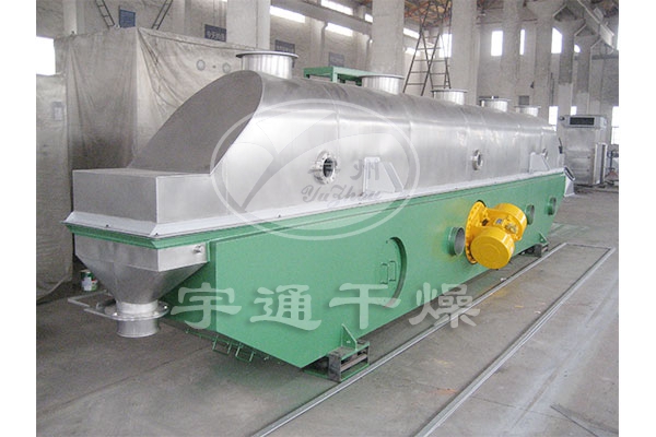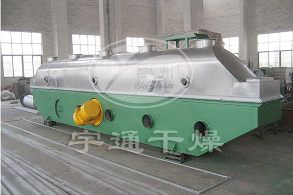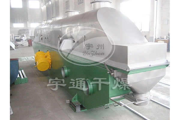 物料自進料口進入機內, 在振動力作用下, 物料沿水平方向拋擲向前連續運動,熱風向上穿過流化床同濕料換熱后, 濕空氣經旋風分離器除塵后由排風口排出, 干燥物料由排料口排出。
