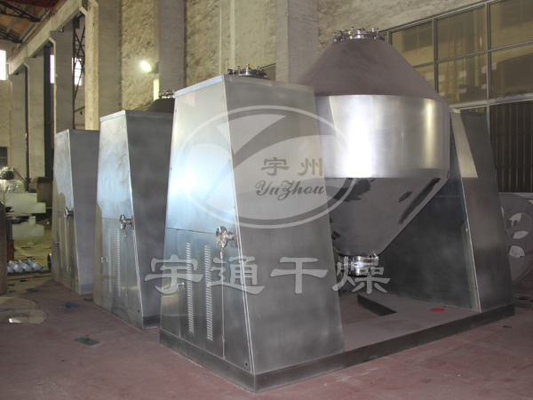 SZG系列雙錐回轉真空干燥機是集混合、干燥于一體的新型干燥機。將冷凝器,真空泵與干燥設備配套,組成真空干燥裝置。(如不需要回收溶劑,冷凝器可不用)本機設計,內部結構簡單,清掃容易,物料能全部排出,操作簡便。能降低勞動強度,改善工作環境。同時因容器本身回轉時物料亦轉動,但器壁上不積料,故傳熱系數高,干燥速率大,不僅節約能源,而且物料干燥均勻充分,質量好。
