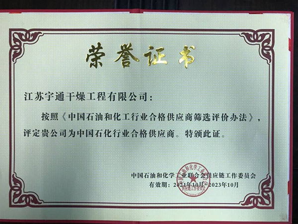 中國石化行業(yè)合格供應(yīng)商榮譽(yù)證書