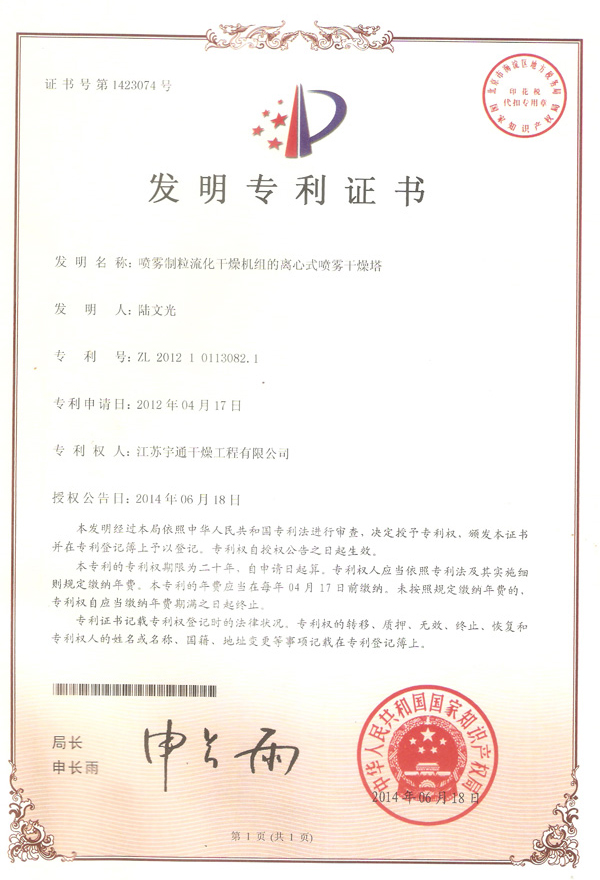 - 發明-噴霧制粒流化干燥機組的離心式噴霧干燥塔