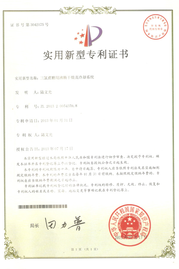 - 發明-三氯蔗糖用沸騰干燥及冷卻系統
