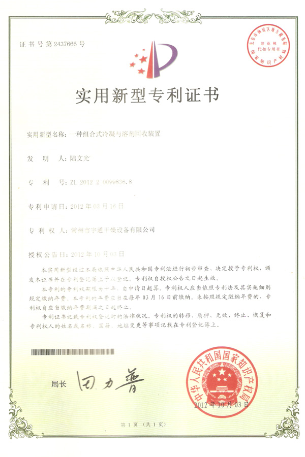 - 實用-一種組合式冷凝與溶劑回收裝置